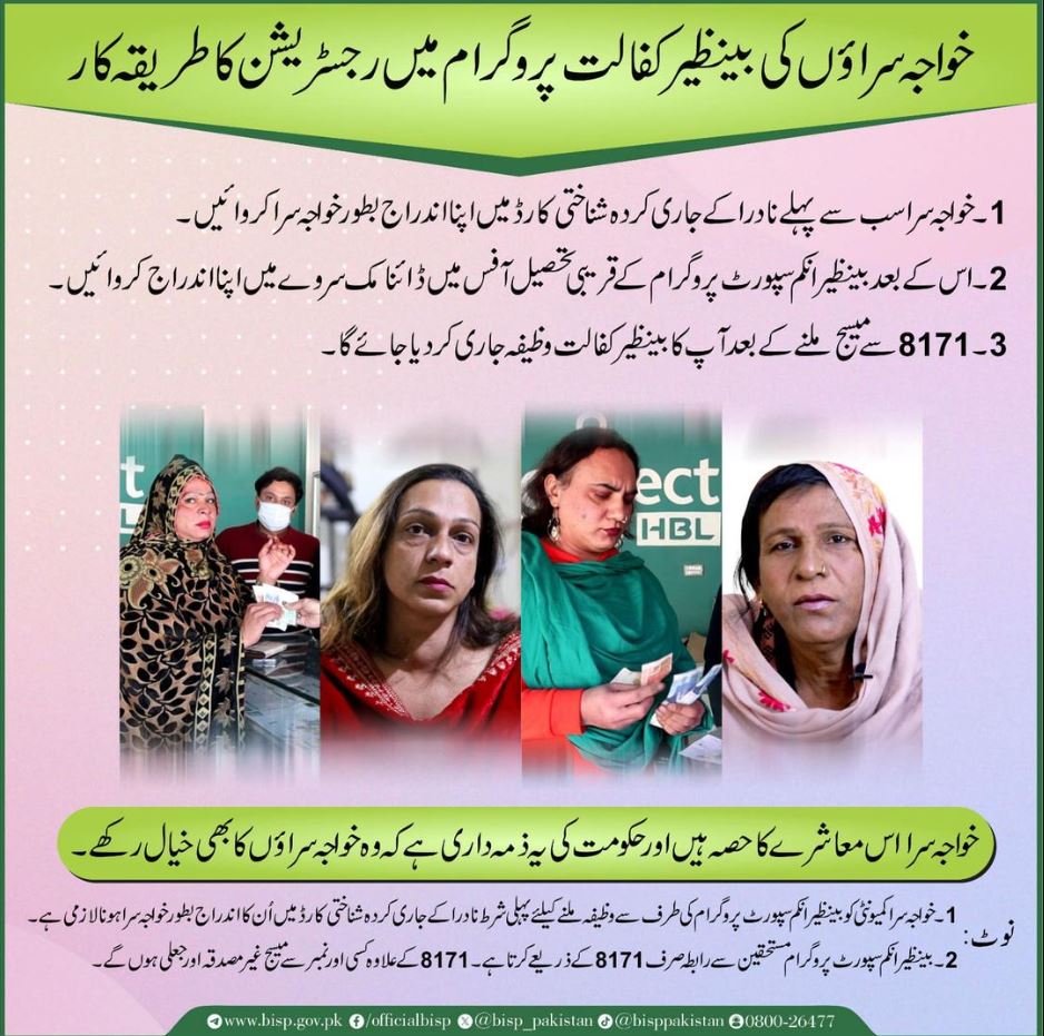 Now Transgenders can also register in Ehsaas Bisp Kafalat Program to get stipend installments from the Benazir income support program. The Requirements and registration process is